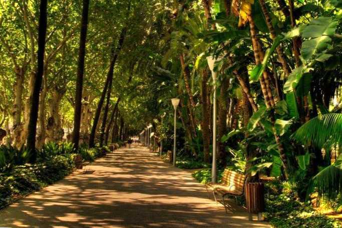 Міський парк, розташований уздовж набережної, звідки відкривається чудовий краєвид на порт Малаги. У парку створено інфраструктуру для комфортного відпочинку всією сім'єю. Тут є дитячі майданчики, зручні лави, фонтани, кафе, лужка з екзотичними рослинами. Дизайн "Пальмового сюрпризу" - яскравий приклад сучасних тенденцій у галузі садово-паркового мистецтва.