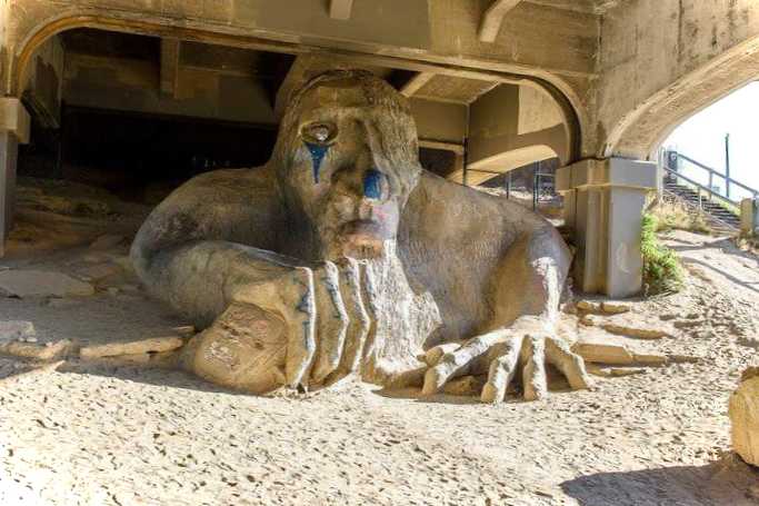 Скульптура розташована в одному з районів Сіетла під мостом Дж. Вашингтона. Фігура казкової істоти виконана з бетону та арматури. Над нею працювала ціла група місцевих скульпторів. Причини її створення цілком тривіальні - раніше під мостом знаходилося сміттєзвалище. Щоб, нарешті, її позбутися, потрібно було чимось зайняти простір. Так 1990 року з'явився Фрімонтський троль.
