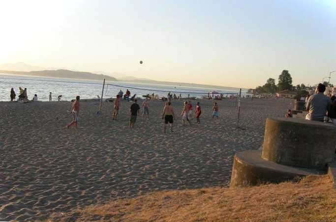 Пляж знаходиться на заході Сіетлу на території однойменного півострова саме в тому самому місці, де в середині XIX століття висадилися перші європейці і заснували поселення. Вода тут досить прохолодна, тому купатися не завжди комфортно, натомість відвідувачам забезпечені відмінна засмага та свіже морське повітря. На пляжі є ресторани з цікавою кухнею та бунгало, де можна зупинитися на кілька днів.