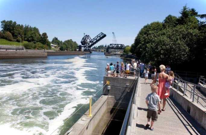 Шлюзи були створені для підтримки рівня прісної вози в озерах Юніон та Вашингтон. Їх будували з середини XIX століття до 20-30-х років XX ст. Туристи приходять подивитися, як через шлюзи проходять кораблі, а також погуляти розташованими неподалік парками і поглянути на морських левів, що облюбували набережні. Під час вихідних тут буває досить багато людей і важко вдається знайти місце на парковці.