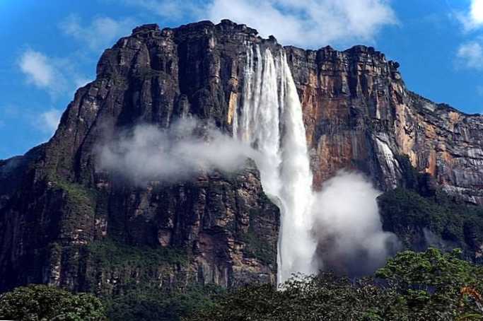 Найвищий водоспад можна знайти в непрохідних тропічних нетрях Венесуели. Потік води прямує вниз з плосковершинної Гори Диявола в Національний парк Канайма. Подолавши 978-метрову висоту, вода розбивається на крихітні частинки туману, що розстилається на кілометри навколо. Наблизитись до унікальної пам'ятки можна виключно водним або повітряним шляхом.