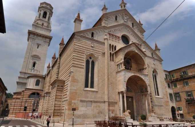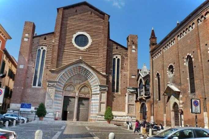 Домініканська церква Святої Анастасії, яка будувалася в період 1290 – 1481 рр. Зовнішній фасад храму досить скоромливий, але інтер'єр вражає пишністю та розкішшю оздоблення. Внутрішній простір базиліки складається з мармурових колон, мальовничих фресок на склепінчастій стелі, скульптур, капел та блискучих вівтарів знатних прізвищ Верони. За своїм багатством інтер'єр базиліки Санта Анастасія перевершує оздоблення кафедрального собору.