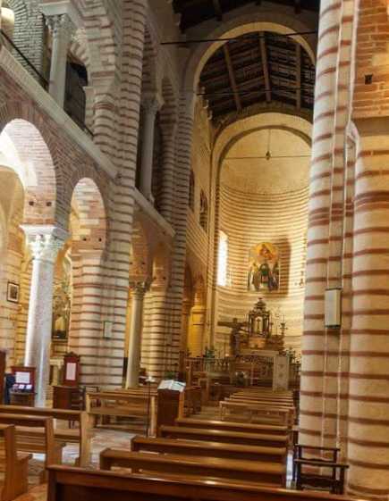 Католицький храм VIII століття, заснований на честь Святого Лаврентія Римського. У ті далекі часи церква перебувала за межею міста, зараз вона входить до центральної частини Верони. Незважаючи на те, що будинок неодноразово перебудовувався, його архітектура є яскравим взірцем раннього романського стилю. Церковний інтер'єр зберігся з XII ст. Усередині знаходяться усипальниці знатних родин Тривелла та Ногарола.