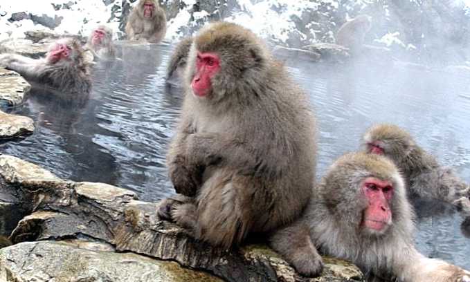 Парк знаходиться на острові Хонсю і лежить у долині на висоті 850 метрів. Приваблює туристів він тим, що в ньому мешкає близько 160 макак. Третина року на території парку лежить сніг. Але улюблене місце мавп – води термальних джерел. Цілими групами вони лаються в теплій воді. У мавп свій статут та ієрархія. Хтось гріється, хтось носить їжу. Харчуються вони рослинами.