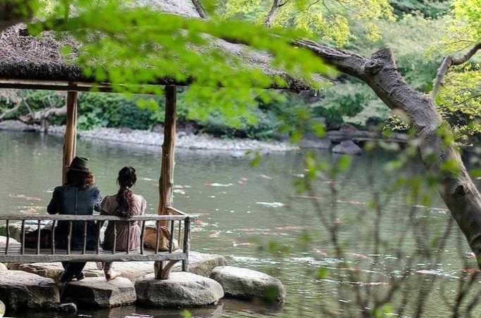 Сад Хаппо-ен - це зелений острів посеред асфальтованого міста. Його красу відзначив уряд, а туристи все частіше додають його у свій маршрут. У саду можна потрапити на справжню чайну церемонію. Після неї можна прогулятися стежкою, що проходить через долину і оточену бонсаями, помилуватися рибками у ставку або відвідати храм. Їх тут два і в них регулярно проводять весілля.