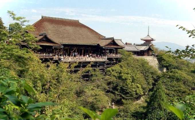 Храм розташований на горі Отова в Кіото. Він вважається перлиною серед святинь цього району. Його збудували у 798 році. Згідно з легендою монах Ентін помітив струмок і, бажаючи знайти його початок, піднімався в гори. Нагорі він знайшов галявину з дивовижним водоспадом. Після віщого сну чернець заснував храм. Згодом тут збудували храмовий комплекс. Вода тут вважається священною, а вид з храму на Кіото - чудовий.