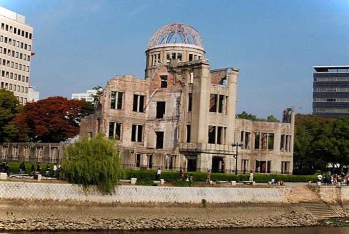 До 8:15 шостого серпня 1945 року купол Гембаку був виставковим центром Хіросіми. Після вибуху атомної бомби, яка потрапила до будівлі, усі відвідувачі загинули. Купол знаходився за 160 метрів від епіцентру вибуху. Він вигорів, але вцілів. Його зміцнили, і він став головним експонатом, який демонструє наслідки атомного вибуху та неприпустимість застосування атомної зброї.