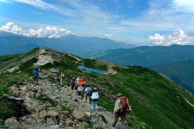 Національний парк розташувався у центральній частині острова Хонсю. Йому вже понад 50 років, а його площа – 17,4 тис. га. У ньому ростуть кленові та хвойні ліси, бамбук. Цю територію називають Японськими Альпами. Там є луки, дивовижні гірські озера і навіть діючий вулкан. Мешканцями парку стали типові жителі японських риштувань.