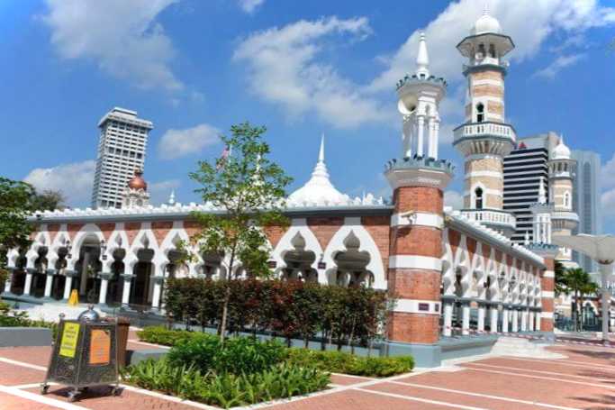 Зводилася на злитті Кланг та Гомбак у 1909 році. Понад 50 років мечеть була головною в країні. При будівництві використовувалися каміння червоного та білого кольорів. У купе з великою кількістю дрібних деталей у декорі мечеть вийшла дуже ошатною. Пальми захищають територію від міської метушні. Для туристів об'єкт закрити, але можна прогулятися територією навколо і зробити фото.