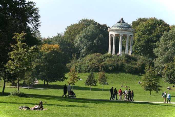 Популярний серед місцевих жителів міський парк, який щодня відвідують тисячі людей. Тут можна кататися на велосипеді та дошці у спеціально відведених зонах, а також замовити кінну прогулянку або просто пройтись пішки. Парк тягнеться від центру до північної частини Мюнхена на 5,5 км. Влітку численні лужка заповнені людьми - вони засмагають, влаштовують пікніки або просто дрімають під тінню дерев.