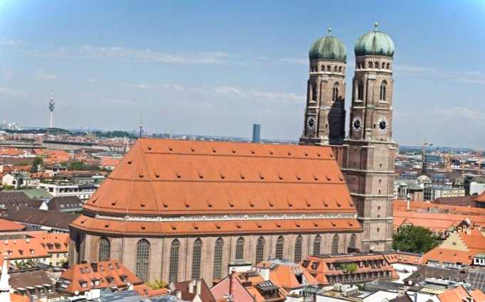 Кафедральний католицький собор Мюнхена з головною вежею 99 метрів заввишки. За міським законодавством заборонено зводити будівлі вище Фрауенкірхе (це рішення є тимчасовим, прийнятим у 2004 році на всенародному голосуванні). Над будівництвом храму працювали в XIV-XV ст. Передбачалося, що він вміщуватиме 20 тис. парафіян, хоча населення міста в ті століття було лише 13 тис. людина.