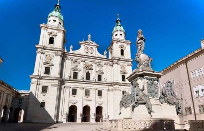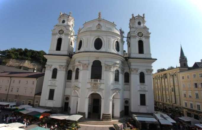 Кафедральний собор Зальцбурга, одна з найпомітніших і наймальовничіших пам'яток міста. У цьому храмі зберігається купіль, в якій був хрещений великий Вольфганг Амадей Моцарт. Величний фасад будівлі виконано в архітектурному стилі раннього бароко. Будівля собору входить до списку Всесвітньої спадщини ЮНЕСКО. Найперша церква на його місці з'явилася у VIII столітті, до XVII століття собор пережив кілька пожеж та руйнувань, після чого був знесений та повністю перебудований.