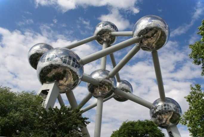 Сучасний монумент - модель молекули, збільшена у кілька мільярдів разів. Висота конструкції – понад 100 метрів, діаметр атомів – 18 метрів. Гігантські атоми з'єднані трубами, всередині яких є коридори та проходи. Туристи можуть піднятися на оглядовий майданчик Атоміуму або відвідати ресторан, розташований усередині молекули. Монумент було зведено у 1958 році до відкриття чергової Всесвітньої виставки досягнень.