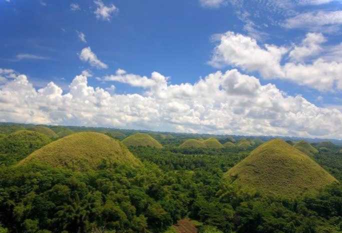 На відомому серед туристів острові Бохоль знаходиться надзвичайно мальовнича гірська система - Шоколадні Пагорби. Свою оригінальну назву ці геологічні пам'ятники отримали завдяки траві, яка їх покриває. Під час сухого сезону трава висихає і перетворюється із зеленої на коричневу - звідси і походить назва пагорбів.