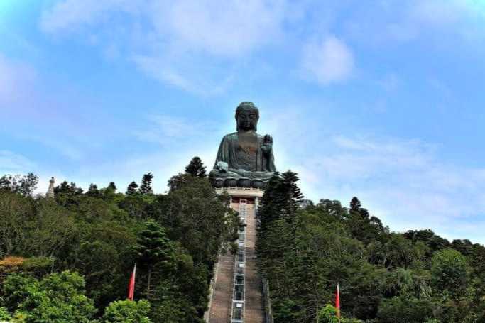 Знаходиться на острові Лантау біля монастиря Лінь. Висота – близько 34 метрів, вага – 250 тонн. Зводився, починаючи з 1990 року, відкриття відбулося через 3 роки. Особою статуя звернена на північ, що не є типовим для монументів таких розмірів. Дістатися Великого Будди можна по звивистій автодорозі або сходами, що налічують 268 ступенів. Доступ до статуї вільний, але за прохід усередину треба заплатити.