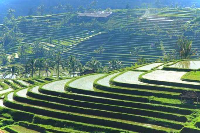 У самому центрі острова розташовані рисові поля, на яких популярний злак вирощують традиційним способом, по-старому. Тут можна побачити самі поля, гору Батукару і однойменний храм. Можливість познайомитися з традиційними індонезійськими пейзажами та арго-культурою.
