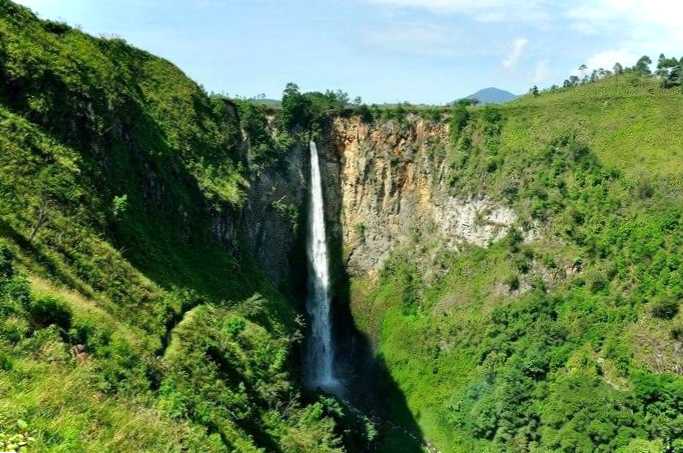 Високий стрімкий водоспад у районі озера Тоба. Джерелом його є підземна річка, яка знаходить вихід нагорі скелі. Біля водоспаду є три оглядові майданчики, що дозволяють насолодитися загальним видом потужного водного каскаду і опинитися безпосередньо поряд з ним.