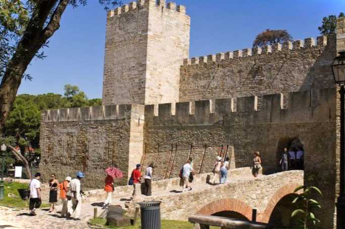 Замок виник у V столітті н.е. на місці римського зміцнення, за півтори тисячі років свого існування він неодноразово перебудовувався. У XII столітті в ньому була резиденція мавританського правителя. До XVI століття у замку жили португальські монархи. У 1755 році споруда була зруйнована землетрусом до самого заснування. Відновлення відбулося лише у першій половині XX століття.