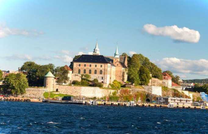 Замок XIV століття у центральній частині Осло, центр потужного середньовічного укріплення, яке до XVII століття виконувало оборонні функції. За правителя Крістіана IV замок був перебудований у стилі ренесанс. У XIX столітті комплекс занепав, після чого була проведена повна реставрація, і він став місцем для державних прийомів. У замковій каплиці знаходяться могили кількох норвезьких королів.