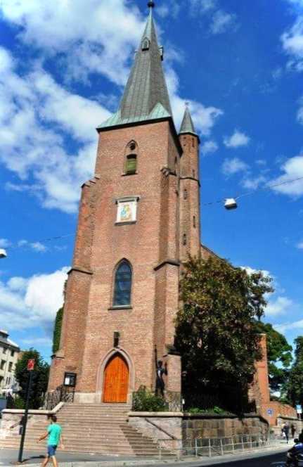 Католицький храм, який був зведений у середині XIX століття у неоготичному стилі. Після довгих років гонінь на католиків внаслідок Реформації їм таки вдалося повернути своє право на власний кафедральний собор у норвезькій столиці. На честь освячення собору королева Жозефіна завітала до приходу копію "Сікстинської Мадонни" пензля Рафаеля. 1989 року тут побував римський папа Іоанн Павло II. Він подарував храму частину мощів Святого Олафа.