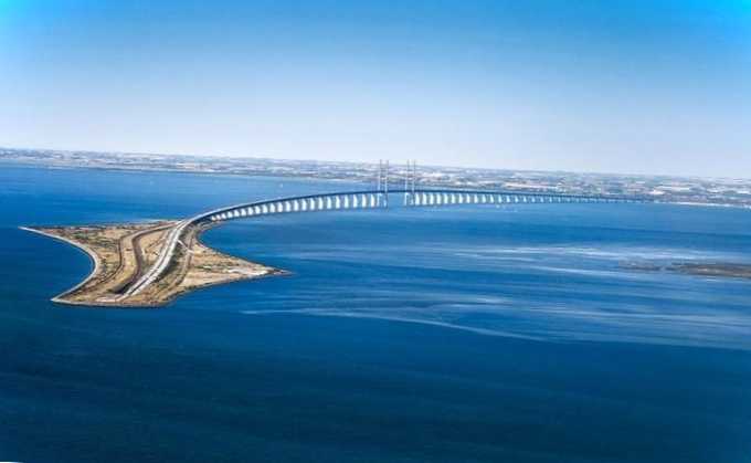 Це міст-тунель, який з'єднує дві країни: Швецію та Данію. Довжина мосту – майже 8 кілометрів. Автомобільна та залізнична дорога проходить на висоті 57 метрів. Але на під'їзді до Данії міст іде під воду. Так потрапляють у тунель, що проходить під водою. Це зроблено для того, щоб не заважати судам та літакам.