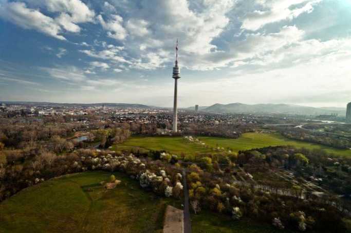 Дунайська вежа Оглядова вежа на території Дунайського парку заввишки 252 метри, найвища точка австрійської столиці. З вершини у ясну погоду видимість сягає 80 км. Піднятися можна на двох швидкісних ліфтах, або подолавши сходи в 779 ступенів. У вежі працюють два ресторани на платформі, що обертається. Влітку любителі банджі-джампінгу влаштовують змагання з пряжок з оглядового майданчика.
