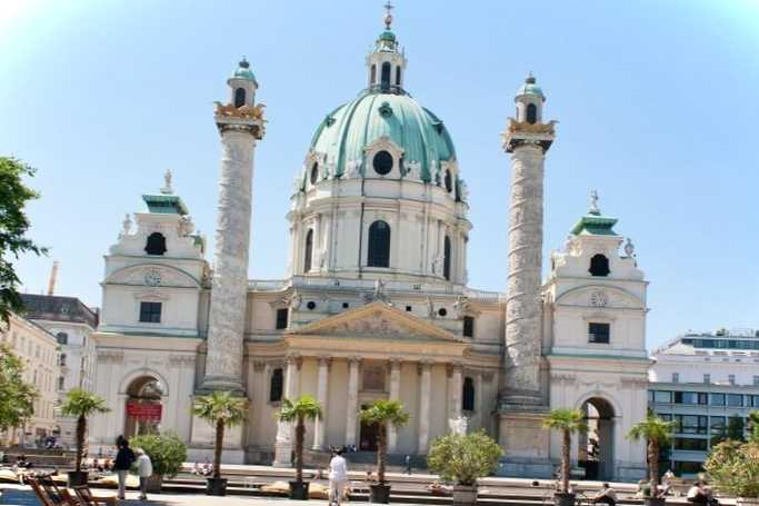 Церква Карлськірхе Католицька церква у стилі бароко з елементами рококо, візантійського, грецького і навіть арабського стилю, побудована за наказом імператора Карла VI у першій половині XVIII ст. Приводом для будівництва стала страшна епідемія чуми, яка вразила Відень 1713 року. Імператор пообіцяв Господу, що зведе церкву на честь свого покровителя Св. Карла, якщо місто позбутися страшної зарази.