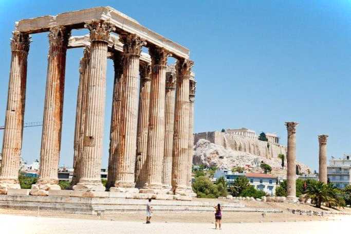 Грандіозне будівництво храму почалося у VI столітті до н.е. при тирані Пісістраті, але після його повалення будівля стояла незакінченою ще шість століть. Роботи були завершені за римського імператора Адріана. У III столітті н.е. під час розграбування Афін храм серйозно постраждав, а у V столітті він і зовсім був закритий за наказом Феодосія II. Остаточне руйнування храму Зевса Олімпійського сталося із заходом Візантійської імперії. Залишки будівлі були виявлені під час розкопок ХІХ століття.
