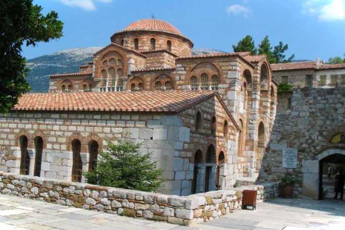 Обитель знаходиться за 11 км. від Афін поруч із Дафнійським гаєм. Він був заснований у VI столітті на місці зруйнованого храму Аполлона і згодом став однією з найшанованіших святинь Греції. Оригінальний вигляд монастиря практично не зберігся, до наших днів дійшло спорудження зразка XI століття – періоду розквіту Візантійської імперії. У XIII столітті на якийсь час в обителі влаштувалися католицькі ченці, але в 1458 році весь комплекс будівель повернули православній церкві.