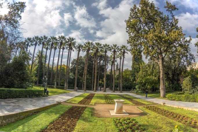 Парк площею 16 Га, розташований у серці Афін. На його території росте п'ять сотень видів різних рослин. Кожному третьому дереву понад 100 років. У межах Національного саду збереглися давньогрецькі руїни – залишки стін, колон та уламки мозаїки. Сад був створений у XIX столітті за волею королеви Амалії. Спочатку в ньому вирощували овочі та фрукти для королівської кухні. Нині колишній город перетворився на зелену оазу посеред кам'яного міста.