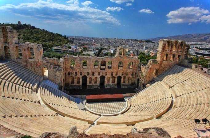 Кам'яний театр, що розташувався на південних схилах Акрополя. Одеон був зведений у середині II століття до н.е. Він використовувався для організації театральних постановок та музичних вистав. Одеон чудово зберігся і більше, він використовується за призначенням і в наші дні. Після реконструкції у середині XX століття сцена почала приймати щорічний Афінський фестиваль. За минулий час на ньому виступили найкращі голоси світової сцени.