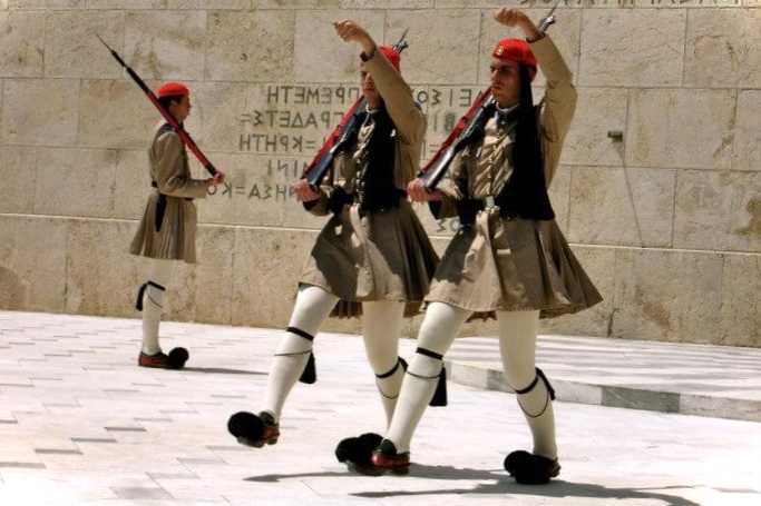 Почесна варта чергує біля стін Королівського палацу на площі Синтагма. Це досить незвичайне і навіть кумедне видовище, яке не схоже на подібні церемонії в інших країнах. Вся справа в незвичній формі грецьких солдатів, яка складається з кітелів, спідниць, білих колготок та тапочок з "помпонами", а також у нестандартному маршуванні під час зміни варти. Це видовище завжди приваблює велику кількість туристів.