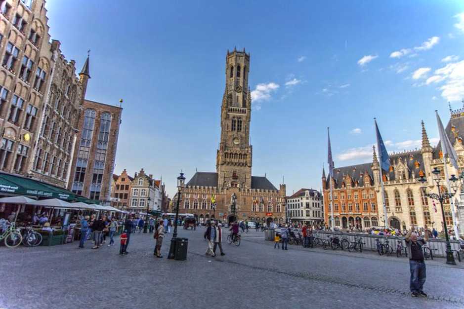 Одне з найпопулярніших місць Брюгге - Ринкова площа. Це історичне місце міста, зараз повністю пішохідне. Центр ринкової площі – Башта Белфорт, що є об'єктом спадщини ЮНЕСКО. Дзвіницю почали будувати у 1240 році, а закінчили у XV столітті. Башта висотою 83 метри зведена у готичному стилі. На верхньому ярусі розміщено 47 дзвонів. Раніше споруда виконувала дозорну функцію, тут розміщували скарбницю та зберігали архіви. Піднятися нагору можна вузькими гвинтовими сходами.