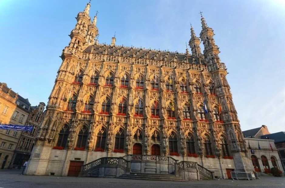 Побудована наприкінці XV століття у готичному стилі. Знаходиться біля церкви святого Петра. Пережила кілька реставрацій після світових воєн. Фасад ратуші прикрашений 236 статуями та сценами з Біблії, в ньому багато веж і маленьких вікон. Левенська ратуша вважається однією з найшикарніших середньовічних будівель у світі. Внутрішнє оздоблення також чудове. Стіни прикрашені картинами відомих художників.