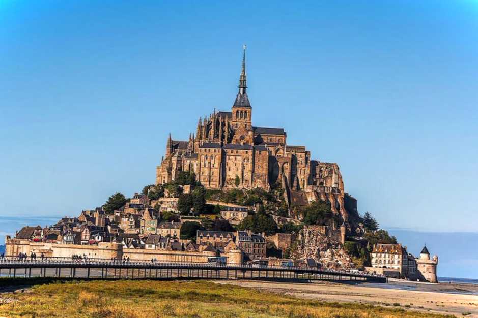 Переклад назви - "гора Святого Михайла". Датовано споруду XI століттям. Це укріплене абатство стоїть на однойменному острові. У центральній частині височіє сам замок, а по його периметру – щільна забудова, дикорослі чагарники та дерева. Стіни міцні та більше схожі на форт. Залежно від сезону територія навколо може бути повністю покрита водою. Іноді затоплює навіть дорогу, що веде до Мон-Сен-Мішель.