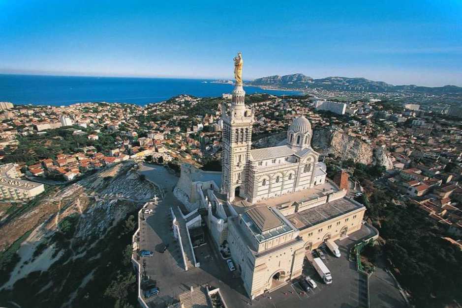 Головна історична пам'ятка Марселя. Зведена в середині ХІХ століття на місці старої каплиці. Місце знакове: тут століттями приймали паломників та благословляли мандрівників. Провідний архітектор проекту - Анрі-Жак Есперандьє. Дзвіницю вінчає 9-метрова скульптура Богоматері. Дзвін важить понад 8 тонн. Фрески та мозаїка – типова прикраса для інтер'єрів того часу.