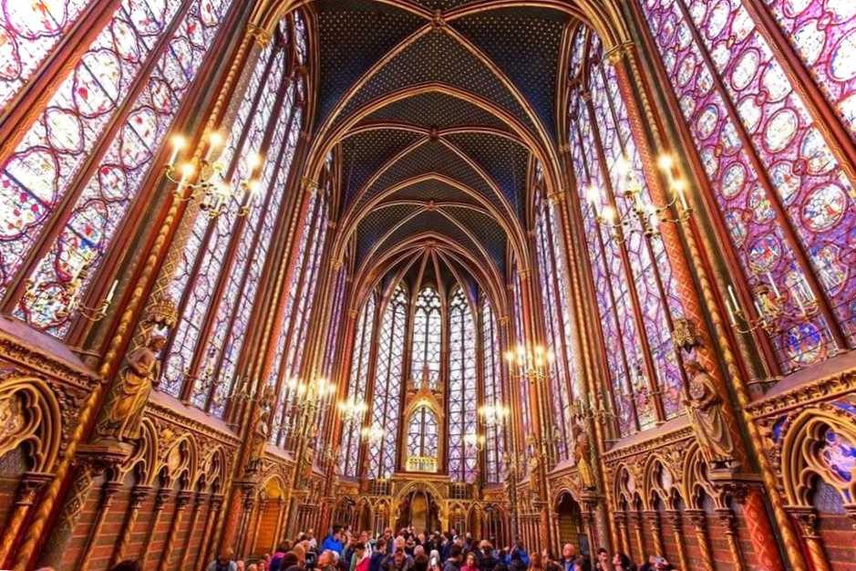 Капела побудована на острові Сіті у Парижі. Хоча будівля відноситься до готичного стилю, вона "повітряна" і "легка". Вся справа у вітражах, що переливаються на сонці і піднімаються майже на всю висоту стін. На них зображено численні символи. Щоб їх зрозуміти, треба скористатися встановленим у Сент-Шапелі телеекраном. Розписні колони підтримують склепіння верхньої каплиці.