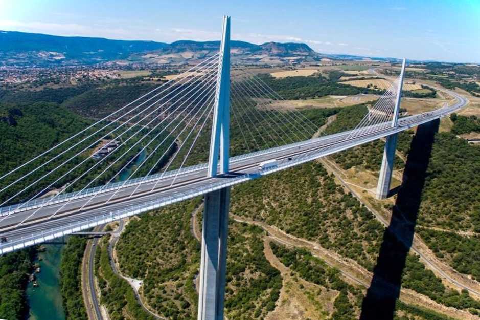 Один із найвищих мостів у світі. Одна з його опор досягає рівня 341 метр, що вище за Ейфелеву вежу. Мійо побудований через долину річки Тарн поблизу однойменного міста. Віадук - частина траси А75, що зв'язує Париж з містом Безьє. Автори проекту – архітектор Норман Фостер та інженер Мішель Вірложо. Незважаючи на масивні колони, їх витвір виглядає легким, а при низьких хмарах, що ніби ширяють у повітрі.