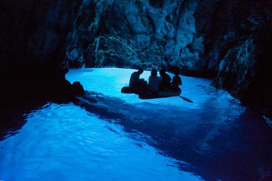 Печера в бухті Балун острова Бішево подобається туристам через унікальне природне явище. При ясній, сонячній та безвітряній погоді щодня на кілька годин грот заповнюється блакитним сяйвом. Запливати всередину можуть човни певних розмірів: не більше 5 метрів у довжину та 1 метр у висоту. Неподалік знаходиться Зелений грот - ще одна унікальна природна пам'ятка.
