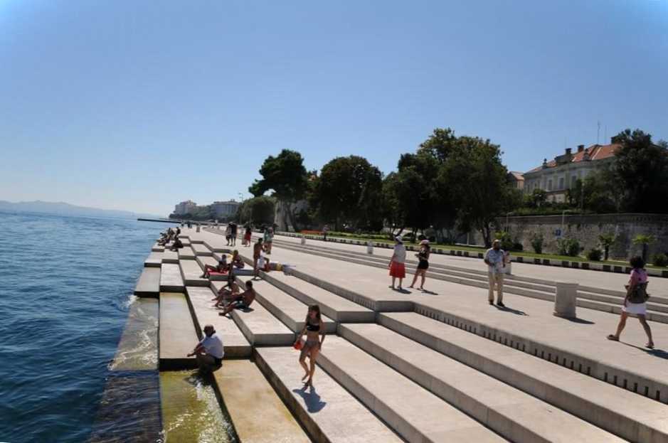 Неподалік порту в Задарі протягом 70 метрів уздовж набережної простягаються кам'яні сходи. Вони - надводна частина звукової системи, що включає також 35 поліетиленових труб. Різні діаметр і довжина, а також кути нахилу дозволяють силі морської води проганяти повітря через конструкцію та отримувати звучання духових інструментів. Архітектор пам'ятки - Нікола Башич.