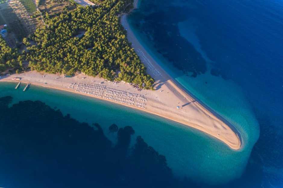 Одна з візитівок Хорватії, найкрасивіший пляж країни. Розташовується на косі, що видається в морі більш ніж на 600 метрів. Назва обумовлена саме незвичайною формою пляжу. Найближче місто Бол потопає в зелені. На узбережжі є чим зайнятися за будь-якої погоди: водні лижі, віндсоїнг, підводне плавання, катання на гідроциклах. На пляжі є все необхідне для комфортного відпочинку, але у сезон тут дуже людно.