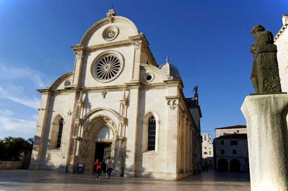 Будівництво розтяглося більш ніж на сто років і завершилося у 1536 році. Висота бані - 32 метри. 74 скульптури оточують вівтарну частину із зовнішнього боку. Статуї старозавітних пророків прикрашають баптистерій. Собор має статус кафедрального у місті Шибеник. Він входить до семи хорватських храмів, іменованих "малими базиліками". З 2000 року внесено до списку Світової спадщини ЮНЕСКО.