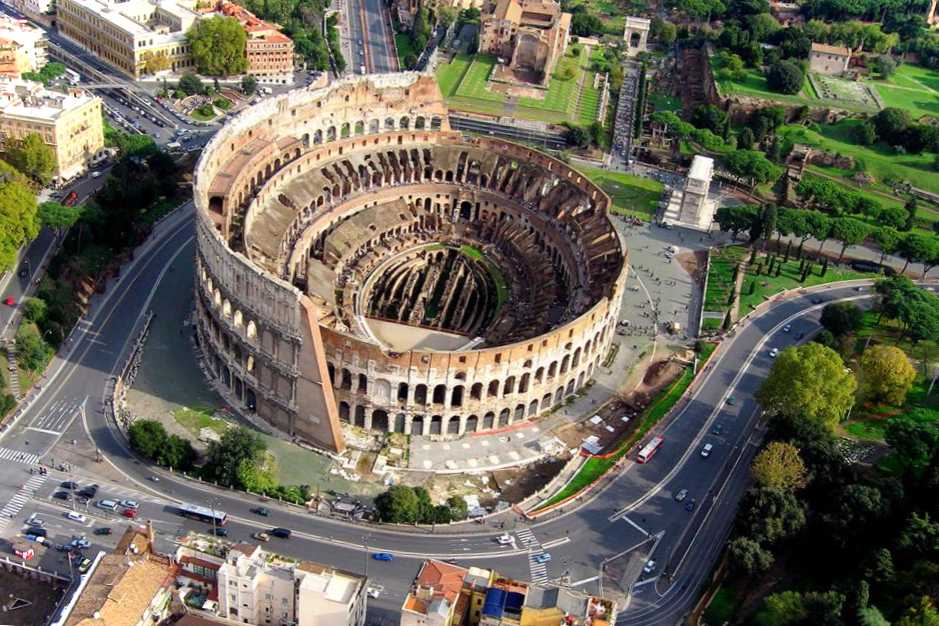 Найбільший амфітеатр періоду античності, архітектурна пам'ятка Стародавнього Риму. Знаходиться в центрі міста поряд із Римським форумом. Будівництво Колізею почалося 72 року нашої ери і завершилося через 8 років. Висота споруди – 45 метрів. Його місткість становила понад 50 000 осіб. На арені амфітеатру проводились гладіаторські бої за участю диких тварин, реконструкції знаменитих битв на суші та на морі, публічні страти.