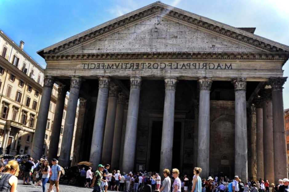 Найдавніший язичницький храм, зведений 2000 років тому на честь усіх давньоримських богів. Був символом могутності Римської імперії. Кругла будівля висотою 42 метри увінчана найбільшим у світі неармованим куполом. Його діаметр – 43,3 метра, вага – 5000 тонн. Цю масу утримують стіни завтовшки 6 метрів. Пантеон є усипальницею уславлених представників мистецтва та двох королів Італії. У VII столітті Pantheon став християнською церквою. Сьогодні це діючий католицький храм та музей.