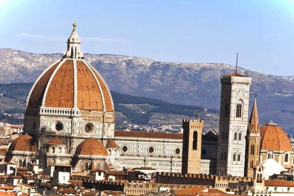 Головний кафедральний собор Флоренції, присвячений покровительці міста Святої Марії. Будувався з 1296 по 1436 рік. Знаходиться на Пьяцца-дель-Дуомо. Будівля вражає своєю пишністю. Головний неф храму покритий червоним цегляним куполом, найбільшим у світі. Значна висота собору була досягнута за рахунок стрілчастих арок, властивих готичному стилю. Стіни оздоблені мармуром усіх відтінків рожевого та зеленого кольору. У соборі зберігаються мощі чудотворця Зіновія Флорентійського.