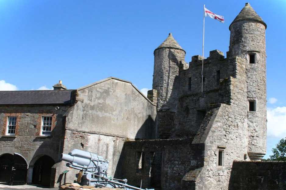 Замок збудовано на початку XV століття. Своєю формою є класична оборонна споруда - квадратна фортеця з вежами в кутах. Кілька разів переходив з рук клану О'Доннеллов до рук клану Магуайров і назад. За часів облог та військових дій було частково зруйновано. В даний час у стінах замку розміщується музей, експозиції якого присвячені історії замку, а також історії королівських полків округу.